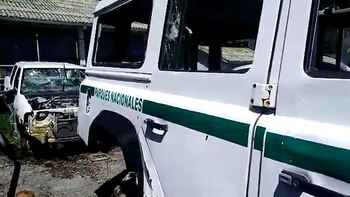 “Esto es lo que iba a ser la Escuela Nacional de Guardaparques, así han dejado los vehículos totalmente destrozados. Así estamos, así están las instalaciones”, dijo Frutos, y relató: “Vidrios rotos, puertas destrozadas, encapuchados haciendo los destrozos a los que ya nos tienen habituados”.