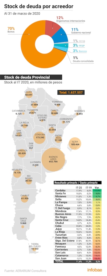 A la vez, el mismo relevamiento sostiene que el stock de la deuda de las provincias hoy es de 1.637.000 millones de pesos y las más afectadas por ello son Buenos Aires, Córdoba, Mendoza, Neuquén, Chubut, Chaco y Jujuy.
