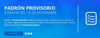 Como había informado en su momento la Cámara Nacional Electoral, desde hoy y hasta el próximo 14 de diciembre estará disponible para consultas el padrón electoral provisorio de cara a las elecciones legislativas de 2021.