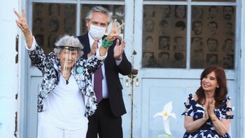De hecho, la ex presidenta se mostró hoy en la Cámara alta, en donde hay sesión, y eso fue leído como que no se iba a mostrar con Alberto Fernández. El acto en la ex ESMA era el último en la agenda presidencial: entregaron los premios Azucena Villaflor de Devicenti a la trayectoria cívica en defensa de los derechos humanos, que no fueron entregados entre 2015 y 2020, durante el gobierno de Mauricio Macri. Se trata de un galardón que fue creado por Néstor Kirchner en el 2003 y cuya primera edición se realizó en el Salón Blanco de la Casa Rosada, en el 2004.