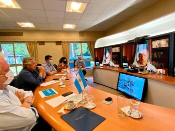 Presentes en la residencia de Olivos, junto al presidente, estuvieron el ministro de Salud, Ginés González García, la secretaria de Acceso a la Salud, Carla Vizzotti, el Jefe de Gobierno porteño Horacio Rodríguez Larreta, el ministro del Interior, Eduardo “Wado” de Pedro, el secretario general de la Presidencia, Julio Vitobello, y el secretario de Comunicación y Prensa de la Presidencia, Juan Pablo Biondi.