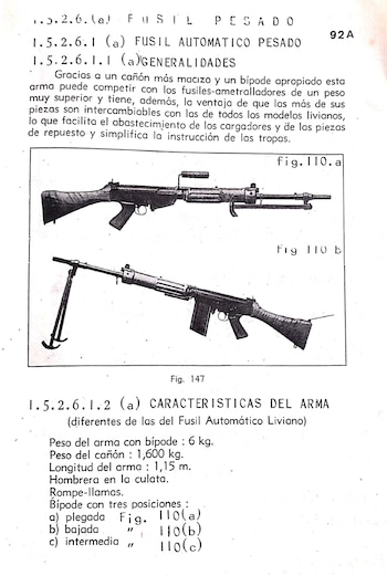Las fotos en blanco y negro y las instrucciones a uno o dos espacios, tipeadas con letra similar a la de máquina de escribir, tenían la función de preparar a los integrantes de esa organización armada peronista en el uso de todo tipo de armas de fuego, como el Fusil Automático Ligero (FAL), la Pistola Ametralladora (PAM), el Fusil Ametralladora Pesado (FAP), el Fusil Ametralladora Madsen calibre 7.65, el Revolver Colt, la Pistola Browning High Power 9mm y, entre otras, las pistolas Bersa, Tala, Ballester Beretta, Astra y Parabelum Walther.