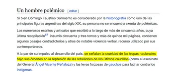 3. Finalmente, existe un ítem titulado “Un hombre polémico” en el que se despliegan todas las anécdotas que quienes detestan a Sarmiento suelen exponer. Se señala: