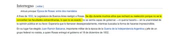 En el capítulo “El Interregno” se expresa algo opinable: Wikipedia dice que no es cierto que Rosas rechazó ser reelegido porque no le otorgaban facultades extraordinarias. En realidad, eso es cierto. Así opinaban muchos de los hombres de la Legislatura de Buenos Aires que decidieron no dárselas.