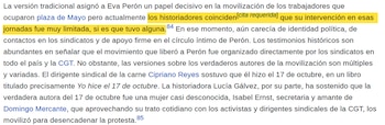 “Su intervención en esas jornadas fue muy limitada, si es que tuvo alguna”, se asegura. Es correcto, aunque tuvo un papel en los días previos a esa histórica jornada, no para convocar a las masas, sino con el propósito de quitar a su marido del centro de la escena.