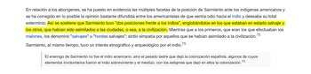 -Citas en las cuales ataca a “gauchos” y “aborígenes” (“indios” en el lenguaje de la época). Más allá de la postura civilizatoria del siglo XIX, que no ve con buenos ojos tipos y organizaciones sociales que no se adapten a ese modelo civilizatorio (lo cual es cierto para Sarmiento, para Rosas y para Marx…), buscan frases en las que Sarmiento ataca y propone matar a unos u otros. Si generáramos polémicas por frases más o menos desafortunadas -y sacadas de contexto histórico-, casi todos seríamos sin dudas polémicos.