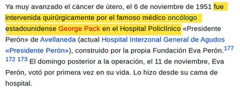 La salud de Evita fue una cuestión de Estado y quizá no alcance con resumirla en que la operó el doctor George Pack. Cuando recuperó la conciencia luego de la intervención a la que fue sometida el 6 de noviembre de 1951, Evita estuvo convencida que quien la había hecho había sido el doctor Ricardo Finochietto. Nunca supo que había sido el norteamericano Pack, un cirujano, patólogo y radioterapista que viajó especialmente en el mayor de los secretos, convocado por el oncólogo Abel Canónico. Por nada del mundo los Duarte querían que se supiese que se la operaría de cáncer, y ella no debía sospechar nada. Y así fue. Para la paciente y la opinión pública, fue el Doctor Finochietto quien la intervino de un pólipo en el útero.