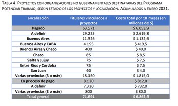 También proyectos sociolaborales como apoyo a la búsqueda de empleo, Formación profesional, cooperativismo e Inclusión financiera. Solo en el mes de enero pasado, los beneficiarios de Potenciar Trabajo, recibieron subsidios por $8.478 millones.
