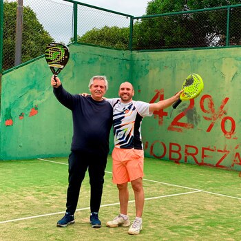 Pero lo que despertó mayor repercusión no fue el mensaje en sí, sino la imagen con la que decidió acompañarlo. Se los ve a él y al Presidente con look deportivo, abrazados en una cancha de pádel y mostrando sus paletas.