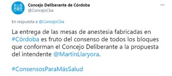 A través del viceintendente, Daniel Passerini, el Concejo Deliberante fue invitado a sumarse a la iniciativa. Allí se logró un acuerdo político que incluyó a todos los sectores y se mejoró la propuesta: resolvieron que lo recaudado sea destinado a un fondo específico -administrado por el Concejo- para comprar únicamente equipamiento sanitario.