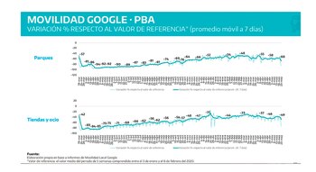 El corte comparativo que se hizo es contra los últimos siete días y contra el promedio de la franja que va del 3 de enero al 6 de febrero del 2020. Por ejemplo, en los parques la movilidad bajó -en comparación al verano del año pasado- alrededor de un 90%.