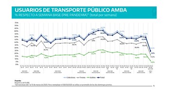 Según cálculos del gobierno de Kicillof la movilidad bajó en todos los índices de medición. El miércoles 26 de mayo se registraron 1.462.365 usuarios totales de colectivo, subte y tren que se desplazaron por el AMBA. Ese número es un 27% menor que el miércoles 19 de mayo, y un 58% menos que cuando no había pandemia, tomando como promedio diario la semana del 7 al 13 de marzo del 2020.