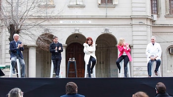 “Volvé”, le gritaron a Cristina Kirchner desde atrás del vallado, al momento en el que iniciaba su discurso. Antes del cierre, un hombre de entre el público declaró que la amaba, a lo que la ex presidenta devolvió la gentileza. “Yo también los quiero”, dijo. Cuando el acto finalizó, quien se quedó sacándose fotos con la gente fue Kicillof, casi como cuando era candidato. Kirchner ya se había retirado.