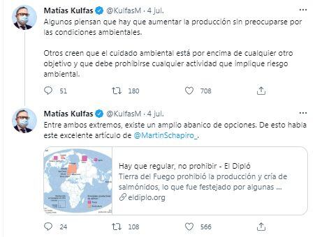“Destaco la decisión de Tierra Del Fuego de prohibir la cría de salmones en la provincia, posicionándonos como líderes en el mundo en tomar esta decisión. La salmonicultura es una práctica nociva con el ambiente y genera un impacto negativo en el ecosistema”, dijo el ministro de Ambiente.