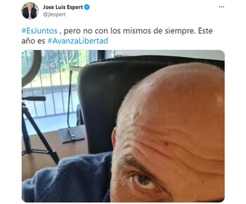 Por otro lado, el líder y candidato a diputado nacional por el frente Avanza Libertad, José Luis Espert, quien no logró un acuerdo con Horacio Rodríguez Larreta, también se burló de la estrategia de comunicación política de “Juntos” con una foto de su cabeza que acompañó con un mensaje: “#EsJuntos, pero no con los mismos de siempre. Este año es #AvanzaLibertad”.