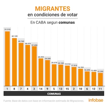 La cantidad de migrantes en condiciones de votar supera ampliamente la cantidad de electores que presenta la Comuna 13, integrada por los barrios de Núñez, Belgrano y Colegiales y qué tiene la mayor cantidad de electores: 220.240.