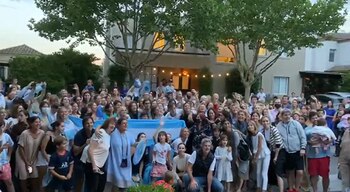 Al ver a sus vecinos, Bullrich no pudo contener las lágrimas. De hecho, profundamente emocionado, en más de una oportunidad tuvo que apoyarse en una imagen de la Virgen María que adorna en la entrada de su casa.