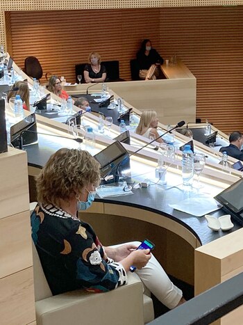 A pesar de que estuvo muy concentrada en su teléfono móvil, Rosso integró la mayoría oficialista que apoyó la iniciativa aprobada este miércoles por la noche en Córdoba, señala Cadena 3.