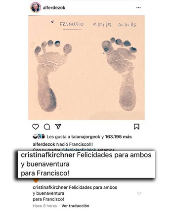 Además de la vicepresidenta, otros funcionarios y dirigentes políticos también saludaron y felicitaron a la pareja presidencial, entre ellos la secretaria de Legal y Técnica de la Presidencia, Vilma Ibarra; el ministro de Defensa, Jorge Taiana; el diputado Daniel Arroyo; y el ministro del Interior, Eduardo “Wado” De Pedro. “¡Bienvenido, Francisco! Y bienvenidos Alberto y Fabiola al mundo de los que dormimos poco pero queremos mucho. Les deseo muchas felicidades y lo mejor en esta nueva etapa de la familia”, señaló el dirigente de La Cámpora.