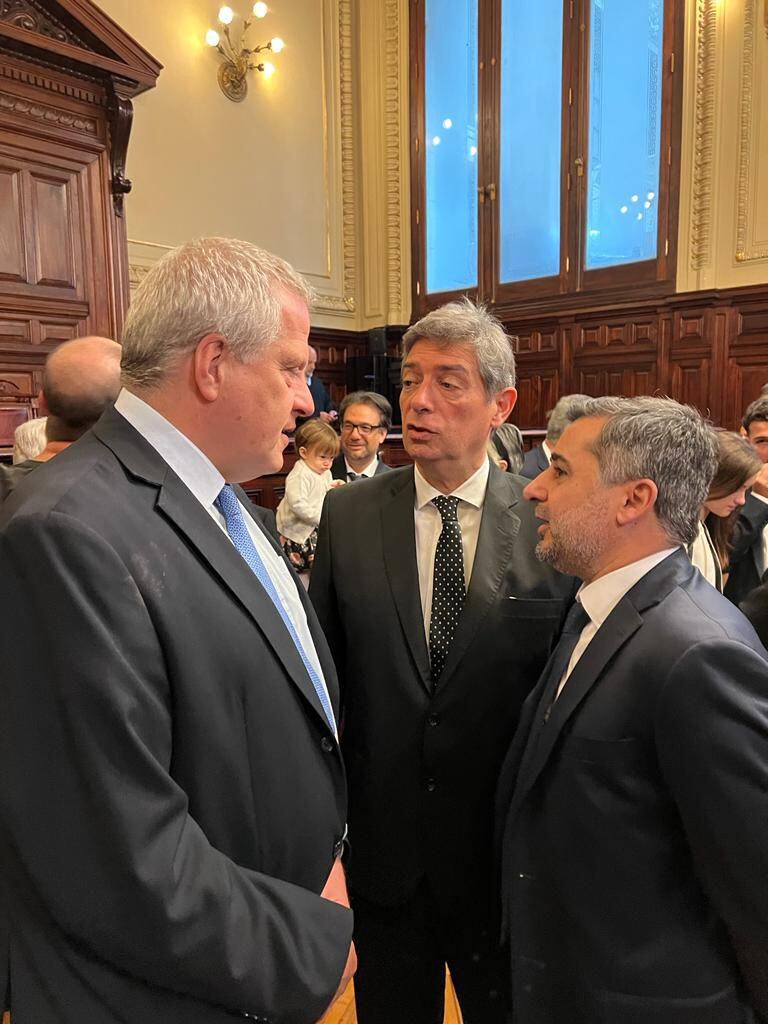 Los primeros en ser llamados fueron los académicos Hugo Galderisi y Guillermo Ricardo Tamarit, en representación del ámbito científico y académico. A ellos los estaba acompañando Diego Molea, que se encargó de invitar al ministro de Educación Jaime Perczyk, que aplaudió con entusiasmo. Al término de la jura se lo vio conversando con el presidente de la Corte y el resto de los jueces.