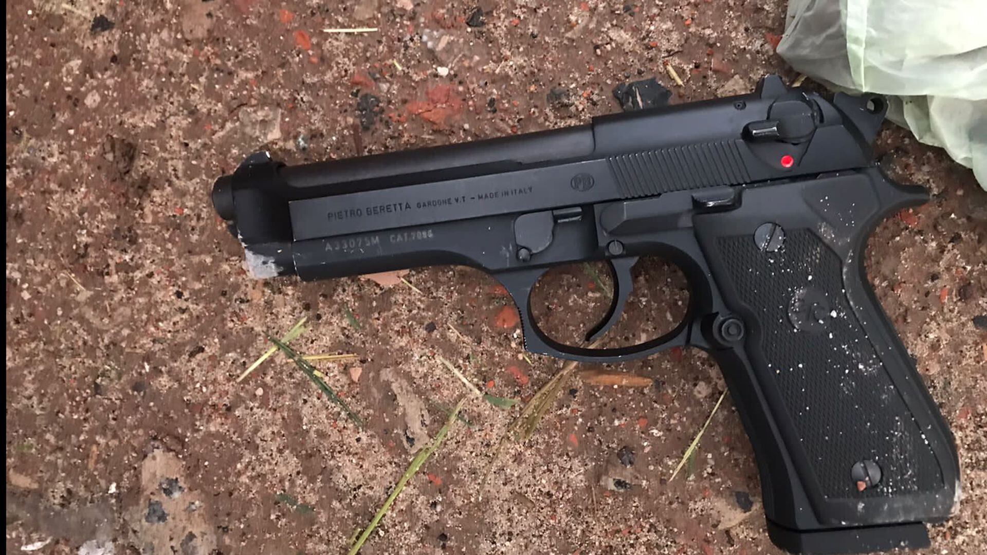 Durante el rastrillaje, los investigadores encuentraron “en la arteria Cullen a 30 metros de su intersección con Escribano una pistola Beretta calibre 40mm serie A-33075-M la cual fuera arrojada por los malvivientes, de la cual se establece mediante capa radial que la misma presenta pedido de secuestro por el delito de robo″.