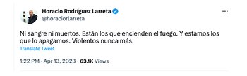 Los dichos de Aníbal Fernández habian generado una reacción en conjunto de los principales referentes opositores. Por caso, el jefe de gobierno de la Ciudad de Buenos Aires, Horacio Rodríguez Larreta, eligió su cuenta de Twitter, para cruzar al funcionario nacional: “Están los que encienden el fuego y estamos los que lo apagamos”, sostuvo.