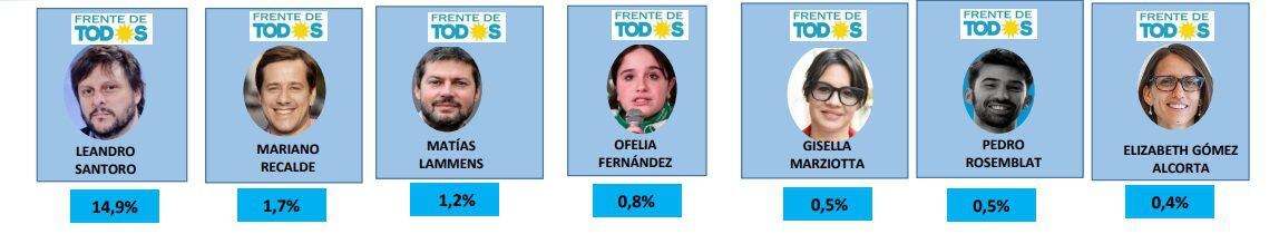 De acuerdo a las encuestas, el Frente de Todos tiene actualmente una intención de voto que ronda el 20%, por debajo del 25% que obtuvo en las legislativas de 2021. En ese escenario, entrarían seis o siete legisladores porteños y dos o tres diputados nacionales.