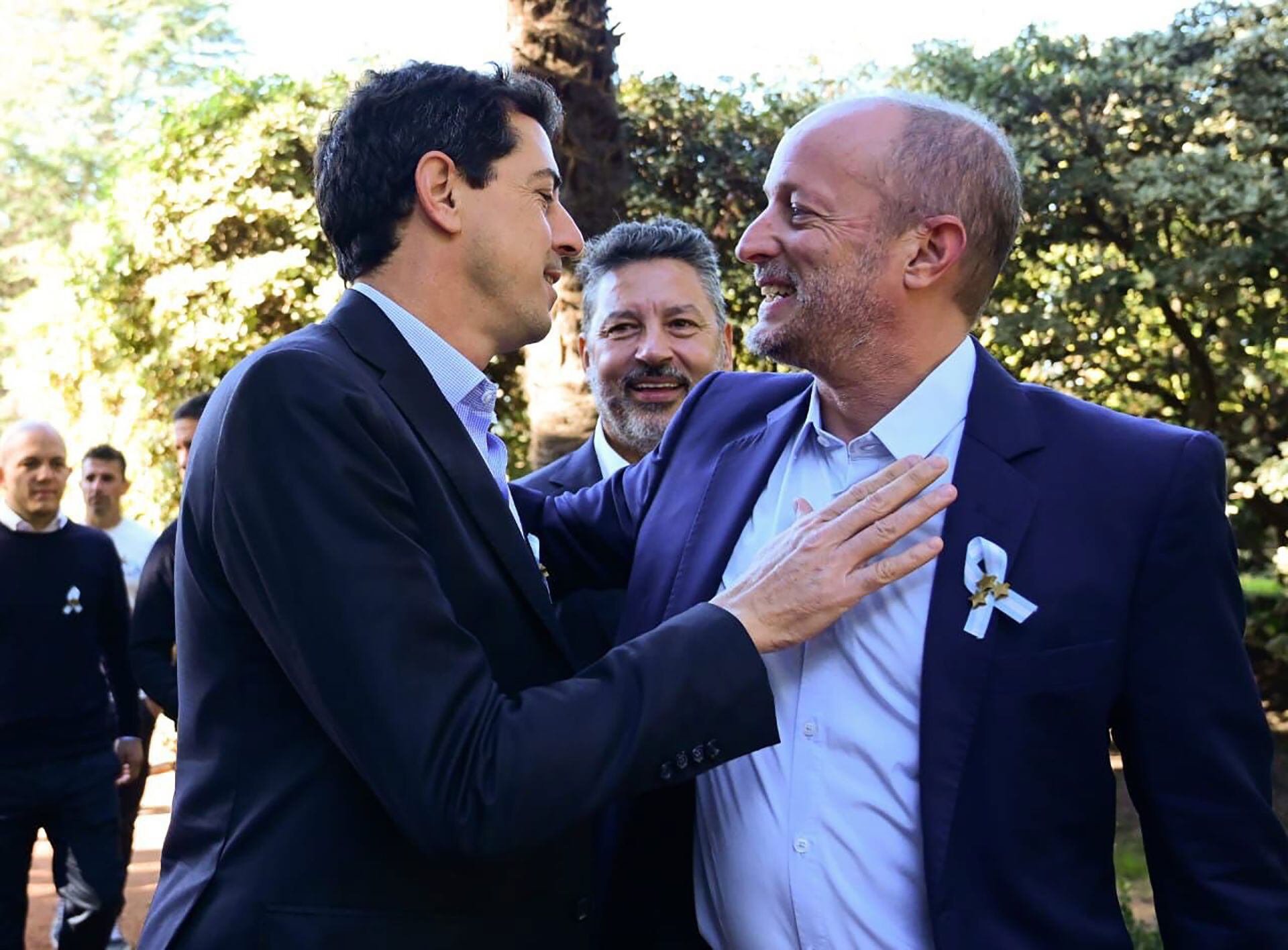 De Pedro encabezó ambos actos. En el primero, estuvo escoltado por la intendenta interina de Merlo, Karina Menéndez; su hermano y jefe comunal en uso de licencia de ese distrito, Gustavo Menénedez; el propio Insaurralde; el subsecretario de Asuntos Municipales bonaerense y primo de crianza de De Pedro, Santiago Révora; el senador provincial Gustavo Soos y el secretario de municipios de la Nación, Avelino Zurro.