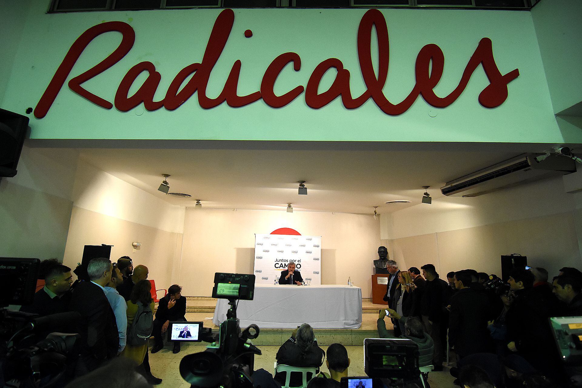 Mientras transcurría la tensa reunión en el tercer piso, los periodistas, fotógrafos y camarógrafos se ubicaron en un amplio salón de la planta baja de la sede radical a la espera de que comenzara la conferencia de prensa de los jefes de JxC. Primero habló López Murphy y luego apareció Juez, pero cuando terminó el encuentro, el contacto “oficial” con el periodismo estuvo a cargo sólo de Morales.
