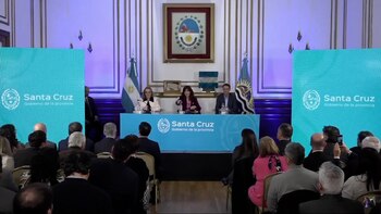El ministro de Obras Públicas comparte escenario con la vicepresidenta y la gobernadora de Santa Cruz, Alicia Kirchner. “Al futuro hay que organizarlo y conducirlo desde el estado y la política. Estas obras las hace el peronismo, cuando define una obra marca un diseño de pais, como queremos que la argentina se integre”, insistió el funcionario que integra el gabinete del presidente Alberto Fernández.