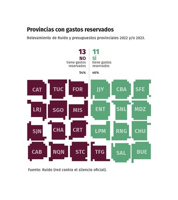 La reconstrucción de la información no fue sencilla ya que poca de esta información está disponible públicamente. Para acceder a más precisiones, Ruido presentó pedidos de acceso a la información que solo respondieron 5 provincias: Tierra del Fuego, Santa Cruz, La Pampa, Entre Ríos y Salta. Las consultas fueron si las administraciones provinciales manejaban gastos reservados u otros fondos sin rendición, y, en ese caso, los montos.