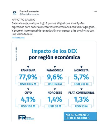 En los posteos del FR sobre el tema también se hizo alusión al impacto que ha tenido para la producción agropecuaria el incremento de los costos en materia de combustibles y energía a causa de la devaluación.