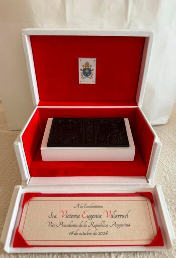 El encuentro tuvo lugar en la Biblioteca del Palacio Apostólico, donde el Sumo Pontífice recibe habitualmente a los jefes de Estado. Todo se desarrolló en un clima muy amable, hasta cariñoso. La Vicepresidente de la Nación conocía a Jorge Bergoglio, de sus tiempos como Arzobispo de Buenos Aires, y luego lo había visto una vez, ya como Papa, en 2014. Lo vio bien de salud y Francisco estuvo incluso de pie buena parte del encuentro, como se aprecia en las fotografías.