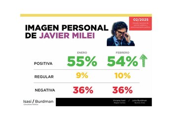 Según los datos más recientes de un estudio nacional de opinión publicado por Isasi/Burdman, realizado entre el 18 y el 23 de febrero, el presidente Javier Milei encabeza el listado de dirigentes con responsabilidad de gestión con la imagen positiva más alta.