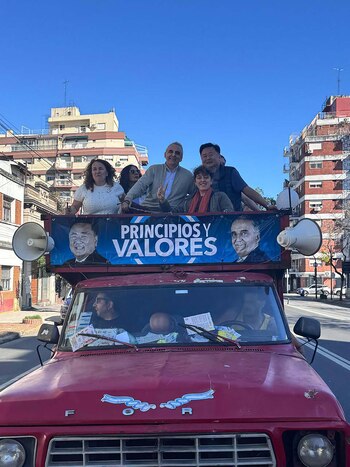 El ex secretario de Comercio Interior, Guillermo Moreno, encabezó una recorrida de campaña junto a sus candidatos a legisladores porteños, Alejandro Kim y Nydia Lirola. Lo hizo arriba de un camión con el sello “Principios y Valores”, su partido, en este último fin de semana de campaña electoral.