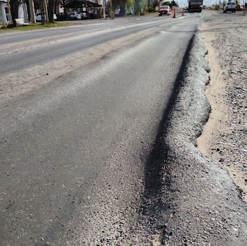 Con material fotográfico, el gobierno sostiene que entre otras dificultades presenta un ahuellamiento de 23 centímetros, abultamientos, hundimientos y fisuras. Presenta baches de importantes dimensiones, agrietamiento y banquinas descalzadas, entre otras dificultades.