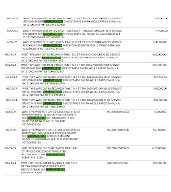 La empresa Banyan Air Services registró tres transferencias por parte del Bank of America que totalizan USD590.199, y tres más desde el Synovus Bank entre noviembre de 2022 y abril de 2023.
