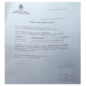 La resolución -cuya notificación se hizo a la AFA de manera formal este mediodía- ordena que los veedores “obtener, recabar y compulsar la documentación y/o información solicitada y negada” por la AFA, además de verificar la posible existencia de “otros actos graves que importen la violación de la ley, el estatuto o los reglamentos” de la entidad.