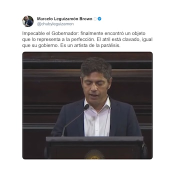 Por ejemplo, el senador Marcelo “Chuby” Leguizamón (presidente del Bloque Hechos + UCR Identidad) se refirió con ironía al uso del atril por parte del mandatario: “Impecable el Gobernador: finalmente encontró un objeto que lo representa a la perfección. El atril está clavado, igual que su gobierno. Es un artista de la parálisis”.