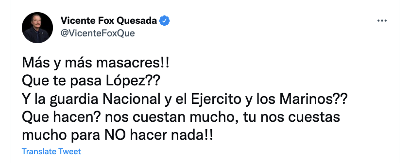 Бывший президент Висенте Фокс Кесада бросился против президента Андреса Мануэля Лопеса Обрадора (AMLO) после резни 9 человек в Атликско, Пуэбла, в марте 2009 года.