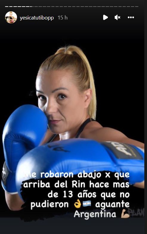 «Они ограбили меня внизу, потому что не могли подняться на ринг более 13 лет. Aguante Argentina», - написал он в рассказе в своем официальном аккаунте в Instagram спустя несколько часов после того, как попал в раскол, вынесенный против мексиканки Джессики Нери Плата в матче, который состоялся в казино Majestic в Панаме.