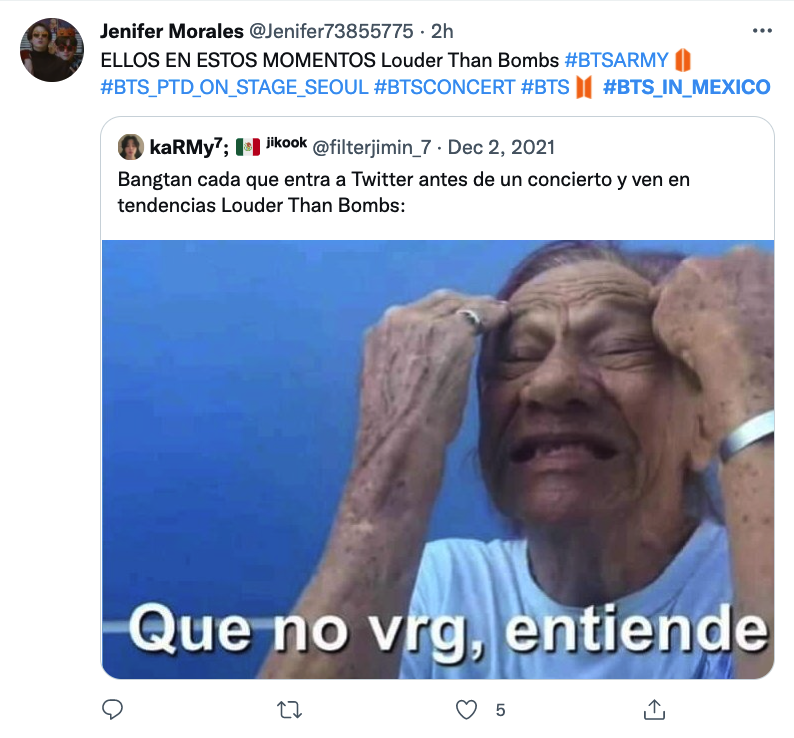 В дополнение к хэштегам, связанным с концертом, Army взяла на себя ответственность за превращение названия Louder than bombs в тренд, которое принадлежит песне из альбома 2020 года Map of the Soul 7.