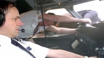 Разница в давлении произвела неконтролируемую декомпрессию, которая высосала капитана Ланкастера и, чудом, оставила его застрявшим с туловищем наружу, удерживаясь только за ноги. В момент отсоединения кабина была заполнена густым туманом, вызванным перенасыщением воздуха, дверь кабины оторвалась и ударилась о органы управления, бумаги и объекты начали летать, создавая ужасающий сценарий.