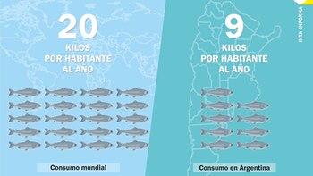 Además, el consumo interno registrado de pescado es de solo nueve kilos por habitante por año. "El desafío es cambiar los hábitos alimentarios de consumo de los argentinos que nos permita sumar a las dietas esta proteína de alto valor nutricional", aseguró el técnico.