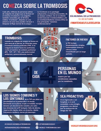 La TEV es una de las principales causas de muerte y discapacidad en todo el mundo. Todos los años se dan diez millones de casos de TEV en países con ingresos altos, medios y bajos. Pero, a pesar de la gran cantidad de casos, la sensibilización pública mundial sobre la trombosis, la TVP y la EP es notoriamente más baja que la conciencia sobre otras enfermedades.