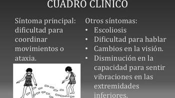 La enfermedad se manifiesta por lo general en chicos y chicas de 8 a 15 años, aunque hay variantes de aparición más tardía. Y se caracteriza por descoordinación en el movimiento de las partes del cuerpo, de la marcha y las extremidades, pérdida del sentido de la posición, alteración en la articulación de las palabras y complicaciones cardiovasculares.