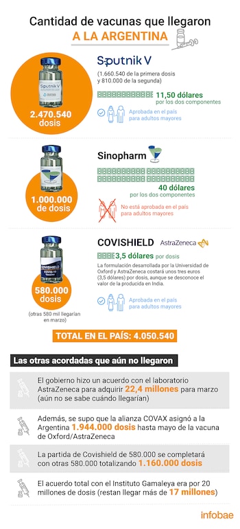 El Gobierno de Argentina había prometido que se iban a recibir y aplicar más de 50 millones de dosis de vacunas contra COVID-19. Sin embargo, recién hoy lleva aplicadas 2,4 millones de dosis y 3,8 millones de dosis distribuidas en las provincias. La demora de la marcha del plan de vacunación generó ansiedad en la población, en un momento en que hay riesgo de más contagios por la llegada del otoño y por la situación crítica de Brasil.
