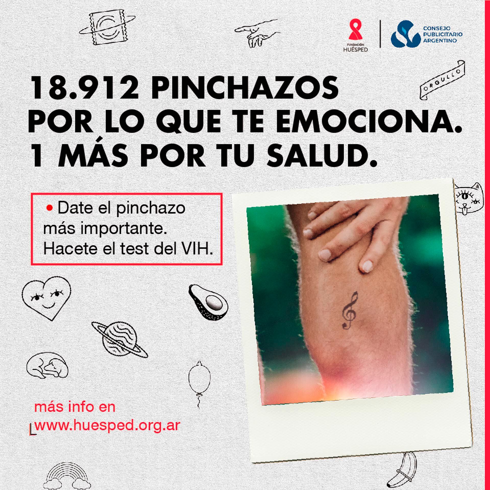 En el marco del Día Nacional de la Prueba de VIH, que se conmemora hoy, 27 de junio, la Fundación Huésped y el Consejo Publicitario Argentino lanzaron una campaña con el objetivo de promover el acceso al diagnóstico de VIH. Bajo el slogan “Date el pinchazo más importante. Hacete el test de VIH” los promotores buscan hacer un paralelismo con los numerosos pinchazos a los que se exponen las personas al realizarse un tatuaje para demostrar su amor o su pasión por alguien o algo o para estar a la moda. Sin embargo, no todas se hacen el más importante: el de la prueba de VIH, informaron los impulsores.
