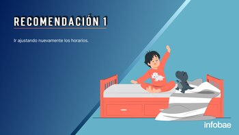 Durante el verano no se suele tener tantos horarios que cumplir ni rutinas que seguir. Por este motivo, será importante que una o dos semanas antes de regresar a clases, se vaya ajustando el horario tanto para irse a dormir como también el de despertarse, procurando un correcto descanso. También será de ayuda ajustar los horarios de almuerzo y cena, para que sean lo más similares posibles a los que tendrán al volver al colegio.