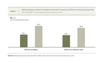 La publicación, en esta parte, se refirió al período 2022-2023: “Se evidencia que el déficit del estado de salud es de 30,9%, el malestar psicológico es de 25,1% y para calidad de sueño 24,1%. Las carencias para las variables psicosociales son representadas por un 16,9% para sentimiento de infelicidad, un 24,5% de carencia en el apoyo social y un 26,4% para la falta de proyectos personales. El objetivo principal de este informe de investigación es describir cómo se presentan las condiciones de salud y aspectos psicosociales en personas mayores que declararon tener problemas de salud”.